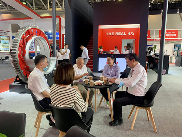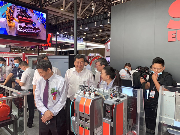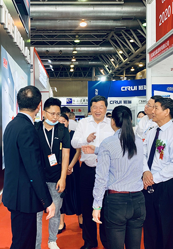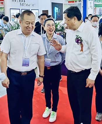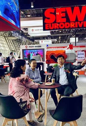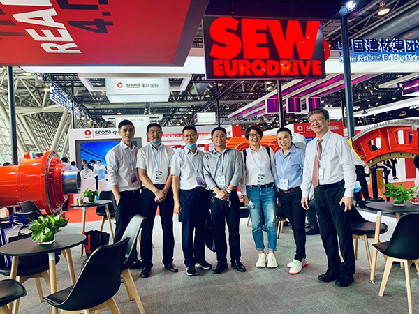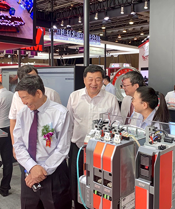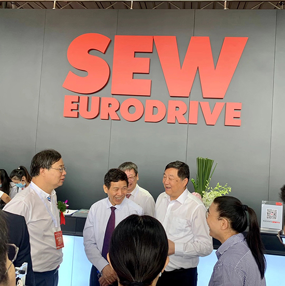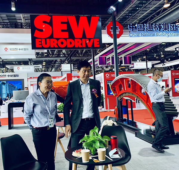 芜湖锦华机械HTH华体会「中国」官方网站董事长程华陪同中国水泥协会会长海螺集团董事长高登榜书记、中国水泥协会原会长乔龙德、中国水泥协会秘书长孔祥忠等水泥行业大咖莅临SEW展台视察指导。