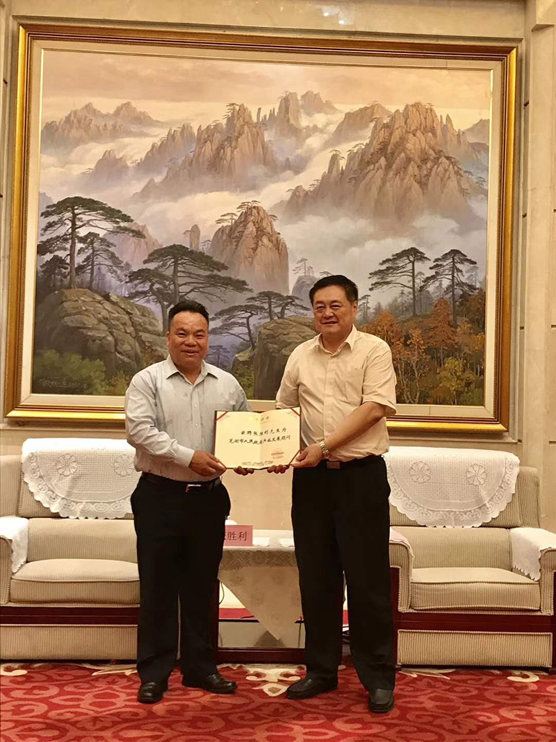 芜湖市委副书记、市长贺懋燮热烈欢迎张总一行的到访考察,市政府秘书长汤德余、市发改委主任张东、市科技局局长杨少华,HTH华体会「中国」官方网站董事长程华、副总经理程亚斌陪同考察。