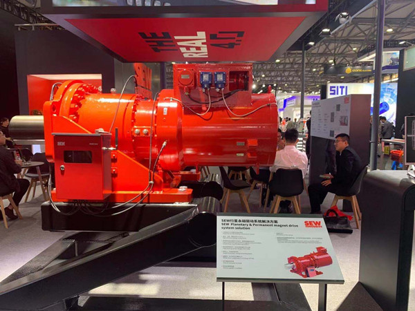SEW行星永磁驱动系统专业解决方案由行星永磁一体机+变频控制系统+独立水冷系统组成,结构更为紧凑,体积和重量仅为电机直驱方案的四分之一,从而减小设备安装空间要求,降低运输、安装费用,特别适合于安装空间狭小的井下工况。永磁电机采用高性能永磁材料,具有更高的传动效率及耐热等级,以及高效、免维护等特点。该系统还可以选配SEW最新的智能监测系统,对驱动系统进行全面的在线监控和故障预警、报警,进行远程诊断。
